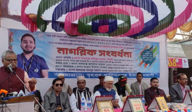 খাদিমনগরে ক্যামব্রিজ ইউনিভার্সিটি’র ডাক্তার সৌরভ সংবর্ধিত