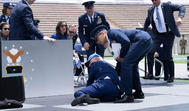 হোঁচট খেয়ে মঞ্চে পড়ে গেলেন বাইডেন