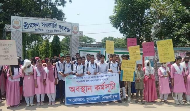 ময়লা সরানোর দাবিতে মৌবাজারে কলেজ শিক্ষার্থীদের মানববন্ধন