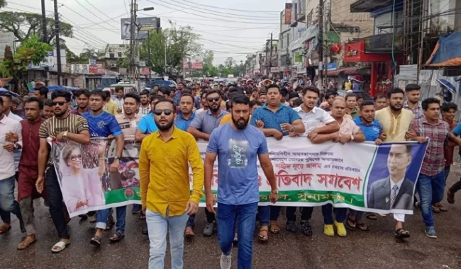 বৃহস্পতিবার দুপুরে সুনামগঞ্জ জেলা ছাত্রদলের আয়োজনে পৌর শহরের পুরাতন বাসস্ট্যান্ড এলাকা থেকে বিক্ষোভ মিছিলটি বের হয়ে শহরের মূল সড়ক ট্রাফিক পয়েন্টের দিকে যেতে চাইলে কালীবাড়ি পয়েন্ট পুলিশ বাধা দেয়। পরে ছাত্রদলের নেতাকর্মীরা সেখানেই প্রতিবাদ সমাবেশ করে।