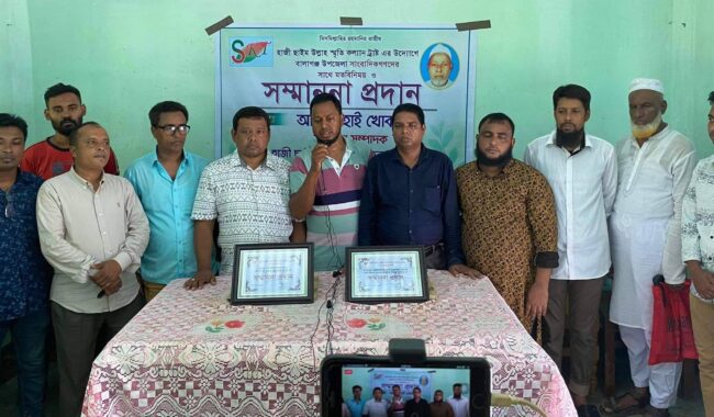 বালাগঞ্জ উপজেলার জ্যেষ্ঠ সাংবাদিক রজত চন্দ্র দাস ভূলন ও শাহাব উদ্দিন শাহিন কে ট্রাস্টের পক্ষ থেকে সম্মাননা স্মারক তুলে দেন ট্রাস্টের সাধারণ সম্পাদক আব্দুল হাই খোকন।