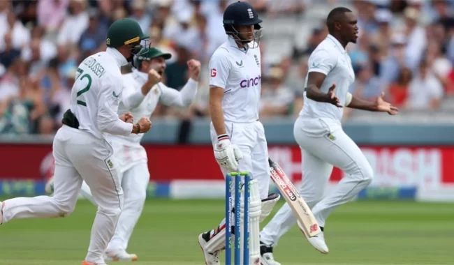 ক্রীড়া ডেস্ক : দক্ষিণ আফ্রিকার ভয়ংকর গতিময় পেস আক্রমণের সামনে খড়কুটোর মতো উড়ে গেল ইংল্যান্ডের শক্তিশালী ব্যাটিং লাইনআপ। আর তাতে প্রোটিয়ারা লর্ডস টেস্ট জিতে নিল ইনিংস ও ১২ রানে। এই জয়ে ৩ ম্যাচ সিরিজে ১-০ ব্যবধানে এগিয়ে গেল দক্ষিণ আফ্রিকা।