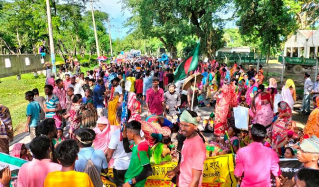 ৩০০ টাকা মজুরির দাবীতে মৌলভীবাজারের বড়লেখা, জুড়ি ও শ্রীমঙ্গল উপজেলার বিভিন্ন স্থানে ঢাকা বিয়ানীবাজার ও ঢাকা মৌলভীবাজার সড়ক অবরোধ করে রাখে আন্দোলনরত শ্রমিকরা। এতে বিভিন্ন স্থানে আটকা পড়ে শত শত যানবাহন। ভূগান্তিতে পড়েন যাত্রীরা।