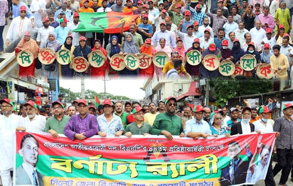 সিলেট জেলা বিএনপির এই বর্ণাঢ্য র্যালিতে বিএনপির সকল অঙ্গ ও সহযোগী সংগঠনের নেতৃবৃন্দ স্ব স্ব ব্যানার, জাতীয় পতাকা ও দলীয় পতাকা নিয়ে যোগদান করেন। র্যালি চলাকালে বিএনপির প্রতিষ্ঠাতা শহীদ রাষ্ট্রপতি জিয়াউর রহমানকে স্মরণ করে এবং দলের চেয়ারপার্সন বেগম খালেদা জিয়া ও ভারপ্রাপ্ত চেয়ারম্যান তারেক রহমানের নামে শ্লোগানে শ্লোগানে রাজপথ মুখরিত করে তোলেন দলের নেতাকর্মীরা।