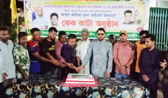 বিশ্বনাথ প্রতিনিধি : সিলেটের বিশ্বনাথে উপজেলা আওয়ামী লীগের সাংগঠনিক সম্পাদক ও পৌর নির্বাচনে মেয়র পদে দলীয় মনোনয়ন প্রত্যাশী আব্দুল আজিজ সুমনের উদ্যোগে জাতির জনক বঙ্গবন্ধু শেখ মুজিবুর রহমানের তনয়া প্রধানমন্ত্রী শেখ হাসিনা’র ৭৬তম জন্মবার্ষিকী পালন করা হয়েছে।