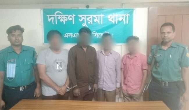 সোমবার দুপুরে দক্ষিণ সুরমার হুমায়ুন রশীদ চত্বর থেকে তাদের গ্রেফতার করা হয়।