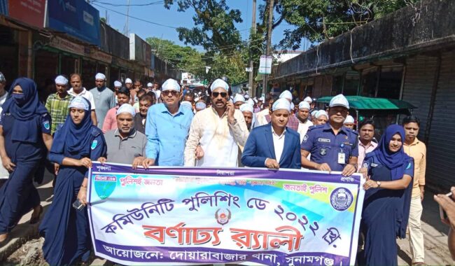 শনিবার (২৯ অক্টোবর) দুপুরে দোয়ারাবাজার থানা পুলিশের আয়োজনে থানার হলরুমে দোয়ারাবাজার থানার ভারপ্রাপ্ত কর্মকর্তা ওসি দেব দুলাল ধরের সভাপতিত্বে ও দোয়ারাবাজার থানার এএসআই শরিফ মিয়ার সঞ্চালনায় অনুষ্ঠানে প্রধান অতিথি হিসেবে উপস্থিত ছিলেন দোয়ারাবাজার উপজেলা পরিষদের চেয়ারম্যান দেওয়ান আল তানভীর আশরাফী চৌধুরী। বিশেষ অতিথি হিসেবে উপস্থিত ছিলেন উপজেলা সহকারি কমিশনার (ভূমি) ও এক্সিকিউটিভ ম্যাজিষ্ট্রেট ফয়সাল আহমদ, উপজেলা কমিউনিটি পুলিশং আহবায়ক আব্দুল খালেক, সুরমা ইউনিয়নের সাবেক চেয়ারম্যান শাহজান মাষ্টার, বীরমুক্তিযোদ্ধা লালা মিয়া, নুরুল ইসলাম ,পুলিশের বিভিন্ন কর্মকর্তা ও জনপ্রতিনিধিরা উপস্থিত ছিলেন।
