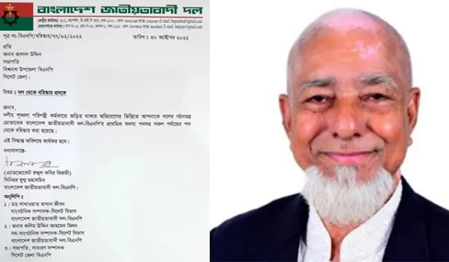 বিএনপির কেন্দ্রীয় সহ দপ্তর সম্পাদক তাইফুল ইসলাম স্বাক্ষরিত এক চিঠিতে জালাল উদ্দিনকে দলের প্রাথমিক সদস্য পদসহ সব পর্যায়ের পদ থেকে বহিষ্কারের বিষয়টি জানা যায়। এর আগে দলীয় শৃঙ্খলা পরিপন্থী কর্মকাণ্ডে জড়িত থাকার অভিযোগে জালাল উদ্দিনকে বহিষ্কারের বিষয়টি চিঠিতে জানান বিএনপির সিনিয়র যুগ্ম মহাসচিব রুহুল কবির রিজভী।
