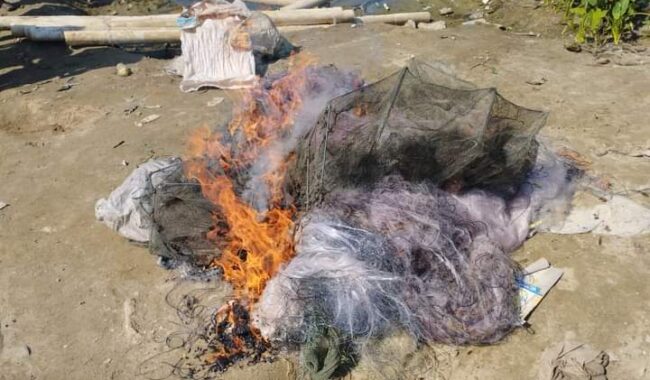 এসময় হাবলু মিয়া নিজের দোষ স্বীকার করে, ভ্রামমান আদালতের কাছে বাকী জীবনে এমন অপরাধ না করা প্রতিশ্রুতিদেন।অবৈধ কারেন্ট ও দোয়ার জাল উন্মুক্ত মাঠে আগুনে ধ্বংস করার সময় নির্বাহী কর্মকর্তা মোঃ নাহিদ হাসান খান কঠোর হুঁশিয়ারি প্রদান করেন।