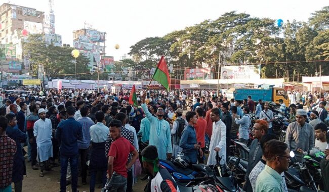 ডেস্ক রিপোর্ট : খণ্ড খণ্ড মিছিল নিয়ে সিলেটের আলিয়া মাদ্রাসা মাঠে সমাবেশস্থলে যোগ দিচ্ছেন বিএনপির নেতাকর্মীরা। বাস চলাচল বন্ধ থাকায় শনিবার ভোর থেকে মোটরসাইকেল, অটোরিকশা ও হেঁটে সমাবেশস্থলে আসছেন অনেবে। দুই-একদিন আগে থেকেই সমাবেশস্থলে জড়ো হতে শুরু করেন সিলেটসহ বিভিন্ন জেলা থেকে আগত নেতাকর্মীরা। ইতোমধ্যে সমাবেশস্থলে জড়ো হয়েছেন দলটির কয়েক হাজার নেতাকর্মী। অনেকে ভোর থেকে খণ্ড খণ্ড মিছিল নিয়ে আসছেন সমাবেশে।