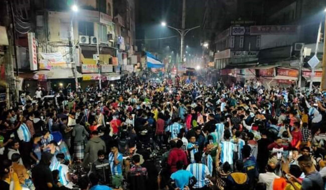 মেসিবাহিনীর বিজয়ের পর নগরের বিভিন্ন এলাকা থেকে মিছিল, মোটর শোভাযাত্রা আর বাদ্যযন্ত্র বাজিয়ে নগরের প্রাণকেন্দ্র জিন্দাবাজার চৌহাট্টা, আম্বরখানা সড়কে জড়ো হতে থাকেন আর্জেন্টাইন ভক্ত সমর্থকরা। মেসিবাহিনীর বিজয়ে মধ্যরাতে পুরো নগরী পরিণত হয়েছিল মিছিলের নগরীতে।