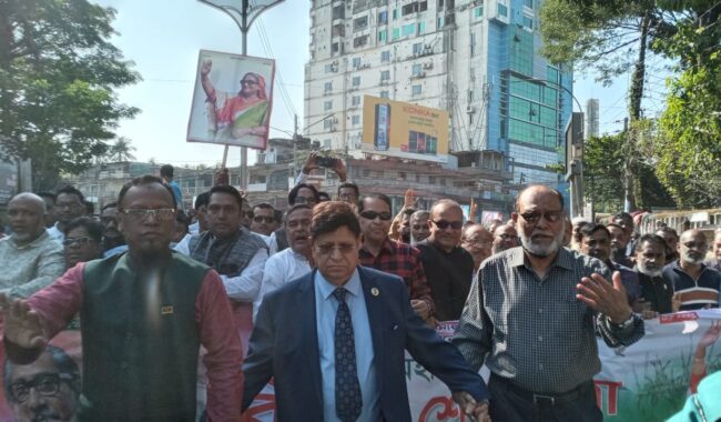 ডেস্ক রিপোর্ট : পররাষ্ট্রমন্ত্রী ও সিলেট-১ আসনের সংসদ সদস্য ড. এ কে আব্দুল মোমেনের নেতৃত্বে বিজয় শোভাযাত্রা করেছে মহানগর আওয়ামী লীগ। মহান বিজয়ের মাসের কর্মসূচির অংশ হিসেবে এই শোভাযাত্রা অনুষ্ঠিত হয়। পররাষ্ট্রমন্ত্রীর সঙ্গে ছিলেন মহানগর আওয়ামী লীগের সভাপতি বীর মুক্তিযোদ্ধা মাসুক উদ্দিন আহমদ ও সাধারণ সম্পাদক জাকির হোসেন।