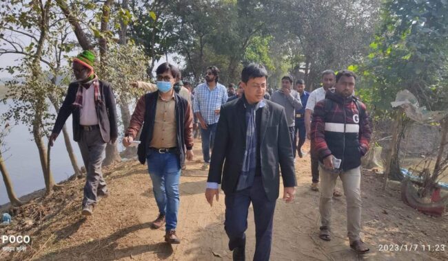 শনিবার সকালে উপজেলার পান্ডারগাঁও ইউনিয়নের করিমপুর গ্রামের নদীর তীরে দেখার হাওরের পিআইসির কাজ পরিদর্শন করেন।