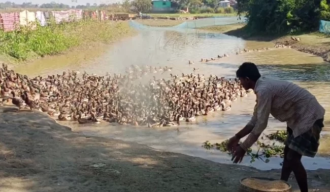 সুনামগঞ্জ শহরতলির লালারচর গ্রামের সুকান্ত পালের একসময় ভাঙা ঘর ছাড়া আর কিছুই ছিল না। মহাজনের কাছ থেকে চড়া সুদে টাকা নিয়ে করেন হাঁসের খামার। বর্তমানে তিনি একজন হাঁসের সফল খামারি। বছরে দুবার হাঁসার বাচ্চা এনে বড় করে বিক্রি করে পরিবারের আর্থিক কষ্ট দূর করেছেন তিনি। গত পাঁচ বছর ধরে এই ব্যবসা করছেন তিনি। দু’বছর হলো তারা চার ভাই এবং ষাটার্ধ্ব বাবা সমর পালও হাঁসের খামারে কাজ করেই সময় কাটান বেশি।
