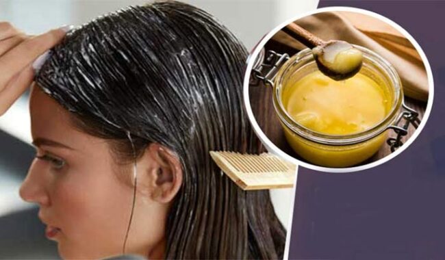 টেবিল চামচ নারকেল তেল ও ঘি নিন, এতে যোগ করুন এক টেবিল চামচ করে লেবুর রস ও অ্যালোভেরা জেল। ভালো করে মিশিয়ে চুলে লাগান। এক ঘণ্টা পরে শ্যাম্পু করে ধুয়ে ফেলুন। প্রথমবার ব্যবহারের পরই অনুভব করতে পারবেন চুল অনেক ঝলমলে-মসৃণ হয়ে গেছে।