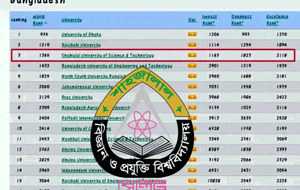 শাবি প্রতিনিধি : ওয়েবমেট্রিক্সের র্যাংকিংয়ে বিজ্ঞান ও প্রযুক্তি বিশ্ববিদ্যালয়ের মধ্যে দেশসেরা হয়েছে শাহজালাল বিজ্ঞান ও প্রযুক্তি বিশ্ববিদ্যালয়। সম্মিলিতভাবে তৃতীয় অবস্থানে রয়েছে এ বিশ্ববিদ্যালয়টি। সম্প্রতি বিশ্বের দুই শতাধিকেরও বেশি দেশের ৩১ হাজার উচ্চ শিক্ষাপ্রতিষ্ঠান নিয়ে বিশ্ববিদ্যালয় র্যাংকিং-২০২৩ (জানুয়ারি) প্রতিবেদন প্রকাশ করেছে স্পেনের রাজধানী মাদ্রিদভিত্তিক শিক্ষা ও গবেষণা প্রতিষ্ঠান ওয়েবমেট্রিক্স।
