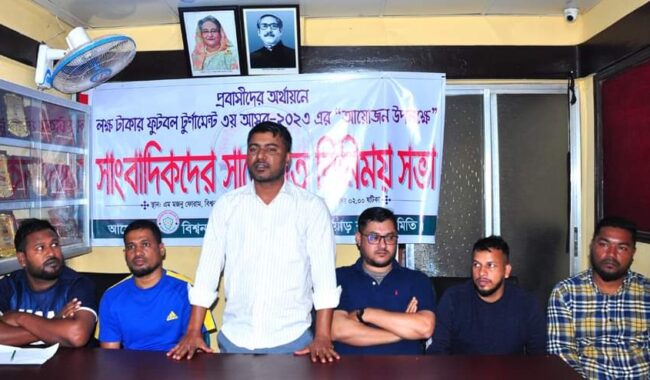 ফুটবল টুর্নামেন্ট উপলক্ষে রবিবার উপজেলা খোলোয়াড় কল্যাণ সমিতি স্থানীয় সাংবাদিকদের সাথে মতবিনিময় করেছেন। পৌর শহরের পুরানবাজারস্থ এম এম মজনু ফোরামে ওই সভা অনুষ্ঠিত হয়। সভায় সাংবাদিকসহ সর্বস্থরের সহযোগিতা কামনা করেন আয়োজক কমিটি।