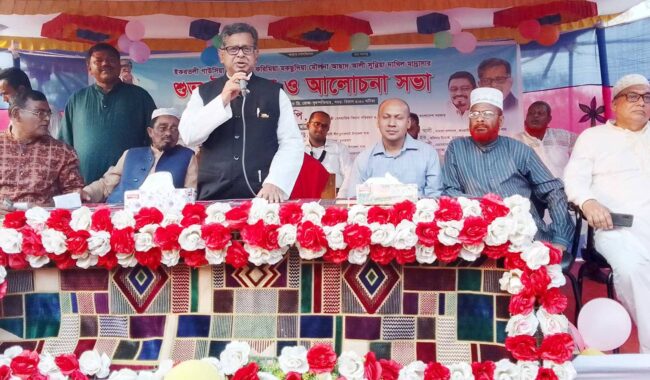 বৃহস্পতিবার বিকেলে উপজেলার ১নং গাজীপুর ইউনিয়নের ৮নং ওয়ার্ডের ইকরতলী গাউছিয়া জালালিয়া করিমিয়া মকছুদিয়া মৌলানা আছাদ আলী সুন্নিয়া মাদ্রাসার উদ্বোধনী অনুষ্ঠানে এসব কথাগুলো বলেন। উপজেলা চেয়ারম্যান আলহাজ্ব আব্দুল কাদির লস্করের সভাপতিত্বে ও গাজীপুর ইউনিয়ন আওয়ামীলীগের সাধারণ সম্পাদক রুবেল আহমেদের পরিচালনায় এতে বক্তব্য রাখেন উপজেলা নির্বাহী কর্মকর্তা সিদ্ধার্থ ভৌমিক, উপজেলা ভাইস চেয়ারম্যান মোঃ লুৎফুর রহমান মহালদার, উপজেলা আওয়ামীলীগের সাধারণ সম্পাদক মোঃ আনোয়ার আলী, পৌর আওয়ামীলীগের সভাপতি মোঃ আবু তাহের মিয়া মহালদার, উপজেলা আওয়ামীলীগের যুগ্ন সাধারণ সম্পাদক লুৎফুর রহমান চৌধুরী, বিজ্ঞান ও প্রযুক্তি বিষয়ক সম্পাদক এম এ মালেক মাষ্টার, আহম্মদাবাদ ইউপি চেয়ারম্যান মোঃ জাকির হোসেন পলাশ, গাজীপুর ইউপি চেয়ারম্যান মোহাম্মদ আলী, মিরাশী ইউপি চেয়ারম্যান মানিক সরকার, রাণীগাও ইউপি চেয়ারম্যান মোস্তাফিজুর রহমান রিপন, গাজীপুর ইউনিয়ন আওয়ামীলীগ সভাপতি ও সাবেক চেয়ারম্যান মোঃ হুমায়ুন কবির খান, চুনারুঘাট প্রেসক্লাব সভাপতি মোঃ জামাল হোসেন লিটন, সাবেক চেয়ারম্যান তাজুল ইসলাম, উপজেলা কৃষকলীগের সভাপতি মুজিবুর রহমান মুজিব, সাধারণ সম্পাদক শেখ জামাল আহমেদ, উপজেলা ছাত্রলীগের সভাপতি শাহজাহান সামী, সাধারণ সম্পাদক সায়েম তালুকদার, গাজীপুর ইউনিয়ন আওয়ামীলীগের সহ-সভাপতি আলহাজ্ব উসমান গণি কাজল জাপানী, সাংগঠনিক সম্পাদক সোহেল আহমেদ, আহম্মদাবাদ ইউনিয়ন আওয়ামীলীগ সহ-সভাপতি মোঃ আব্দুল হাই প্রিন্স, গাজীপুর ইউনিয়ন যুবলীগ সাধারণ সম্পাদক মোঃ জহিরুল ইসলাম উস্তার, গ্রামের বিশিষ্ট মুরুব্বী মৌলানা আজিজুর রহমান, মাদ্রাসা দাতা সদস্য মীর আলেয়া, সাংবাদিক মীর জুবায়ের আলমসহ সাংবাদিক এস এম জিলানী আখনজী, শংকর শীল প্রমূখ।