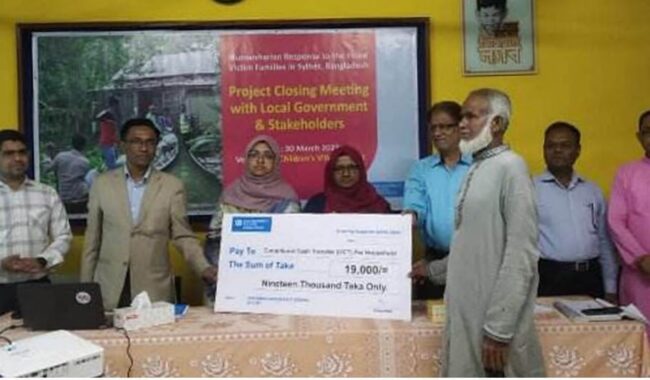 ডেস্ক রিপোর্ট: সিলেটের ওসমানীনগর ও বালাগঞ্জের বন্যাকবলিত পরিবারের মধ্যে মানবিক সহায়তা কর্মসূচি প্রকল্প সফল ভাবে সম্পন্ন হয়েছে। বৃহস্পতিবার (৩০ মার্চ) বিকাল ৩টায় ওসমানীনগর উপজেলার দয়ামীরস্থ এসওএস শিশু পল্লীতে স্থানীয় প্রশাসন এবং উপকারভোগীদের সমন্বয়ে একটি প্রকল্প সমাপনী অনুষ্ঠানের আয়োজন করা হয়।