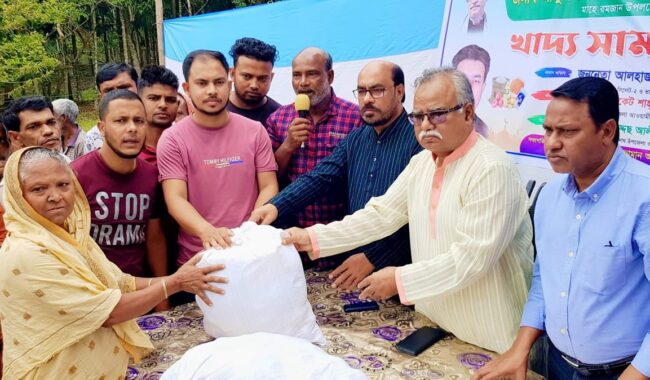 তিনি শনিবার সকালে পৌর শহরের ইলামেরগাঁও গ্রামে পৌর আওয়ামী লীগের কার্যনির্বাহী সদস্য এআর চেরাগ আলী ও তার পরিবারবর্গের উদ্যোগে পৌরসভার ৯নং ওয়ার্ডের ২ শতাধিক অসহায়-গরীব-বঞ্চিত পরিবারের সদস্যদের মধ্যে খাদ্যসামগ্রী বিতরণ অনুষ্ঠানে প্রধান অতিথির বক্তব্যে একথাগুলো বলেন। বিতরণকৃত খাদ্যসামগ্রীর মধ্যে ছিল- চাল, ডাল, ছোলা, সয়াাবিন তৈল, পেয়াঁজ, আলু, লবন।