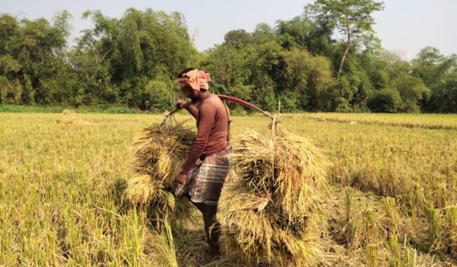 কৃষক-শ্রমিকরা কেউ ক্ষেত থেকে ধান কেটে খলায় টানছে, কেউ রোদে ধান শুকানোর কাজ করছে, কেউ মেশিন দিয়ে ধান কাটা ও মাড়াই এবং কেউ কেউ সনাতন পদ্ধতিতে ধান মাড়াই-ঝাড়াইর কাজে করছেন।
