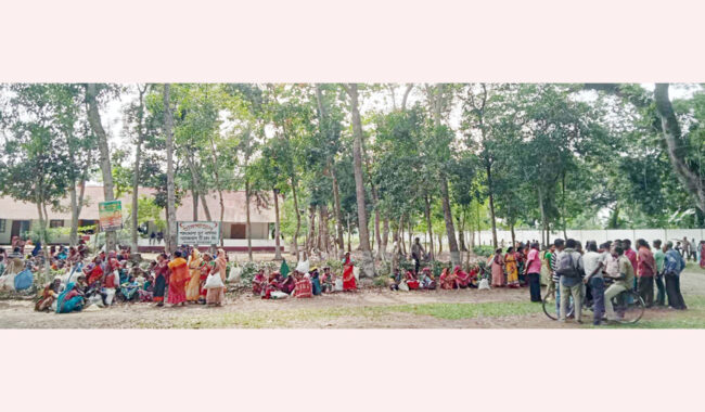 এদিকে তলবের টাকা কেটে রাখার প্রতিবাদে এবং কেটে রাখা বকেয়া মজুরির দাবীতে সকালে বাগানের প্রধান ফটকের সামনে অবস্থান নিয়ে ধর্মঘট করেন বাগানের শ্রমিকরা। কাজে যোগদান না করে বাগানের ফটকে অবস্থান করায় চা বাগানে উত্তেজনা দেখা দেয়।