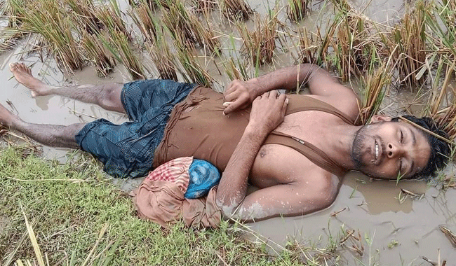 শনিবার দুপুরে উপজেলার বাংলাবাজার ইউনিয়নের উত্তর কলাউড়া কালা-চান্দের হাওরে ধানী জমিতে ধান কাটতে গিয়ে তিনি মৃত্যুবরণ করেন।