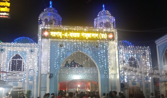 ব্যাপক উৎসাহ উদ্ধীপনা ও ধর্মীয়ভাবগাম্ভীর্যের মধ্যেদিয়ে শুরু হয়েছে হজরত শাহজালালের (রহ.) ৭০৪ ওরস মেবারক। শুক্রবার সকাল থেকে ওরস শুরু হয়ে শেষ হবে শনিবার ভোররাতে। ওরস’কে কেন্দ্রকরে মাজার প্রাঙ্গনকে আলোক সজ্জায় সজ্জিত করা হয়েছে। ছবি – শাওন চৌধুরী