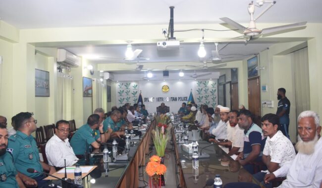 সভায় পুলিশ কমিশনার আসন্ন পবিত্র ঈদ-উল-আযহা-২০২৩ উপলক্ষ্যে সার্বিক আইন-শৃঙ্খলা, সড়ক, রেলপথ ও নৌ-পথে নিরাপত্তা এবং ট্রাফিক ব্যবস্থাপনা বিষয়ে বিভিন্ন দিক-নির্দেশণামূলক বক্তব্য প্রদান করেন।