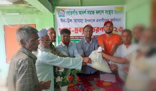 ডেস্ক নিউজ: মুসলমানদের সবচেয়ে বড় ধর্মীয় অনুষ্ঠান পবিত্র ঈদুল আযহাকে সামনে রেখে সুনামগঞ্জ জেলার জগন্নাথপুর উপজেলার ৯নং পাইলগাও ইউনিয়নে গোতগাও আদর্শ সমাজ কল্যাণ সংস্থার উদ্যোগে প্রবাসীদের অর্থায়নে একশত অসহায় পরিবারের মধ্যে খাদ্য সামগ্রী বিতরণ করা হয়। রবিবার সকালে উক্ত অনুষ্ঠান সম্পন্ন হয়।