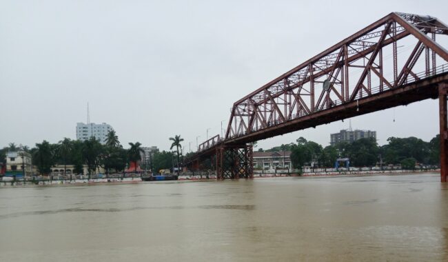 টানা বৃষ্টিপাত ও পাহাড়ি ঢলে বাড়ছে সুরমা নদীর পানি । ছবি : শাওন চৌধুরী