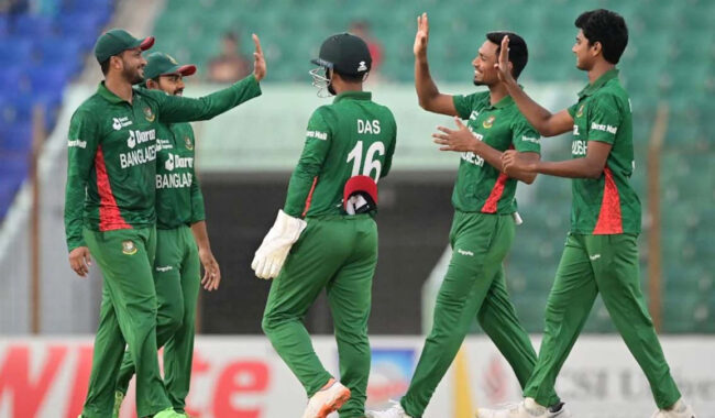 শুরু থেকেই আক্রমণাত্মক মেজাজে ছিলেন রহমানুল্লাহ গুরবাজ। ইনিংসের চতুর্থ বলেই ডাউন দ্য উইকেট এগিয়ে এসে তাসকিনকে ছক্কা হাঁকিয়েছিলেন এই ওপেনার। পরের বলে শর্ট লেংথ থেকে আবার তুলে মেরেছিলেন গুরবাজ, এবার বল ওঠে খাড়া ওপরে। অফ সাইড থেকে আরও তিন জন ফিল্ডার ছুটে আসতে চাইলেও তাসকিন না করে দিয়েছেন, নিজের বলে নিজেই ধরেছেন ক্যাচ। ৫ বলে ৮ রান করে ফিরলেন গুরবাজ, প্রথম ওভারেই বাংলাদেশকে সাফল্য এনে দিলেন তাসকিন। ২.৪ ওভারে জাজাইকে লিটন দাসের ক্যাচ বানিয়ে ৪ রানে প্যাভিলিয়নের পথ দেখিয়ে ২য় ইউকেট শিকার করে তাকসিন।