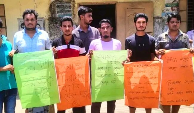 মহি উদ্দিন আরিফ, ধর্মপাশা (সুনামগঞ্জ) প্রতিনিধি : সুনামগঞ্জের ধর্মপাশায় নিরাপদ সড়কের দাবিতে মানববন্ধন অনুষ্ঠিত হয়েছে। শনিবার দুপুর উপজেলার পাইকুরাটি ইউনিয়নের বাদশাগঞ্জ বাজারের ত্রিমুখী মোড়ে এলাকাবাসীর উদ্যোগে এ মানববন্ধন অনুষ্ঠিত হয়। গত শুক্রবার বিকেলে বাদশাগঞ্জ বাজারে ১৫ বছর বয়সী এক চালকের ইজিবাইক চাপায় প্রীতম নামে বৌলাম সরকারি প্রাথমিক বিদ্যালয়ের প্রাক-প্রাথমিক শ্রেণির এক শিক্ষার্থীর মৃত্যু হয়। এ ঘটনায় বিক্ষুব্ধ হয়ে স্থানীয়রা এ মানববন্ধনের আয়োজন করেন।