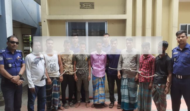 গ্রেপ্তারকৃতরা হলো, গোলাপগঞ্জ সদর ইউনিয়নের উত্তর গোয়াসপুর রুইঘর গ্রামের মৃত তমজিদ আলীর মোঃ ফরিদ উদ্দিন (৫০), একই ইউনিয়নের চৌঘরী গ্রামের মৃত ইব্রাহিম আলীর পুত্র আব্দুল কাদির (৫০), বাঘা ইউনিয়নের বাঘা পূর্বগাঁও গ্রামের তেরা মিয়ার পুত্র আব্দুস ছালাম (৩৫), একই ইউনিয়নের বাঘা পূর্বগাঁও গ্রামের নছির উদ্দিনের পুত্র দেলোয়ার হোসেন (২৩), একই গ্রামের মছব আলীর পুত্র মখলিছ মিয়া (২৬), সুরুজ আলীর পুত্র রেজাউল করিম (২০) মৃত আতর আলীর আব্দুল মতিন (৩০), তেরা মিয়ার পুত্র আনা মিয়া (২৫), একই ইউনিয়নের বাঘা পরগনা বাজারের মৃত মানিক মিয়ার পুত্র নজরুল ইসলাম (৩৫)।