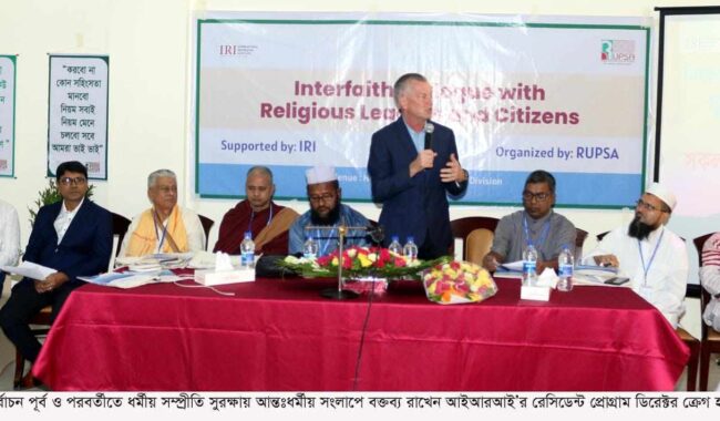 ডেস্ক রিপোর্ট: আন্তর্জাতিক উন্নয়ন সংস্থা ইন্টারন্যাশনাল রিপাবলিকান ইনিস্টিটিউটের (আইআরআই) সহায়তায় বেসরকারি উন্নয়ন সংস্থা রুরাল অ্যান্ড আরবান পুরর্স পার্টনার ফর সোশ্যাল অ্যাডভান্সমেন্ট (রূপসা) আয়োজনে নির্বাচন পূর্ব ও পরবর্তী ধর্মীয় সম্প্রীতি সুরক্ষায় আন্তঃধর্মীয় সংলাপ সিলেটে অনুষ্ঠিত হয়েছে।