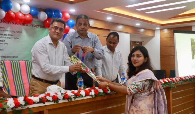 ভেটেরিনারি, এনিম্যাল ও বায়োমেডিক্যাল সায়েন্সেস অনুষদের লেভেল-১ থেকে ডিন এ্যাওয়ার্ড পেয়েছেন জান্নাতুল ফেরদৌস রিতা, জয় দেবনাথ, সানজিদা আক্তার শ্রাবন্তি। লেভেল-২ থেকে নির্জন সরকার, লেভেল-৩ থেকে তানভীর হাসান, লেভেল-৫ থেকে মারজিয়া আক্তার ডিন এ্যাওয়ার্ড পেলেন। নিজ নিজ ক্লাসে শ্রেষ্ঠ রেজাল্টের পাশাপাশি অন্যান্য বিষয় বিবেচনা করে পুরষ্কার হিসেবে মেডেল ও সনদ দেয়া হলো। সিকৃবি ক্যাম্পাসে আয়োজন করে প্রথমবারের মতো কোন একটি অনুষদ এই ডিন এ্যাওয়ার্ড পুরষ্কার দিলো।