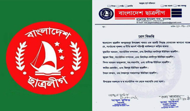 সোমবার (২১ আগস্ট) জগন্নাথপুর উপজেলা ছাত্রলীগেরর জরুরী সভায় তাদের অব্যাহতি প্রদান করা হয়।