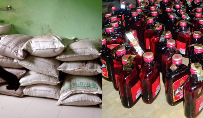 এ ব্যাপারে গোয়াইনঘাট থানার ওসি কেএম নজরুল বলেন, সিলেট জেলার পুলিশ সুপার মোহাম্মদ আব্দুল্লাহ আল মামুনের সার্বিক দিক নির্দেশনায় গোয়াইনঘাট থানা পুলিশ কাজ করছে। এরই ধারাবাহিকতায় এসআই এনামুল হাসান গোপন সংবাদের ভিত্তিতে রুস্তুমপুর ইউনিয়নের উপরগ্রাম থেকে পঁচাত্তর বোতল ভারতীয় মেকডুয়েল মদ ও রুস্তমপুর ইউনিয়নের হাদারপার বাজারের দক্ষিণ দিকে পিয়াইন নদীর পাড়ে ৫০ কেজি ওজনের ২০ বস্তা ভারতীয় চিনি পরিত্যক্ত অবস্থায় উদ্ধারপূর্বক জব্দ করে।
