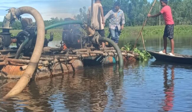 জানা যায়- উপজেলার ইনাতগঞ্জ ইউনিয়নের মোস্তফাপুর গ্রামে বিবিয়ানা নদী থেকে ড্রেজার মেশিন বসিয়ে অবৈধভাবে বালু উত্তোলন করে আসছিল একটি সংঙ্ঘবদ্ধ চক্র। মঙ্গলবার বিকেলে গোপন সংবাদের ভিত্তিতে উপজেলা সহকারি কমিশনার (ভূমি) ও এক্সিকিউটিভ ম্যাজিস্ট্রেট শাহীন দেলোয়ারের নেতৃত্বে একদল পুলিশ ইনাতগঞ্জ ইউনিয়নের মোস্তফাপুর এলাকায় মোবাইল কোর্ট পরিচালনা করে। এসময় অবৈধভাবে বালু উত্তোলনে জড়িত তপতীবাগ গ্রামের জসিম উদ্দিনের ছেলে রুমন আহমেদকে ১ লাখ টাকা অর্থদণ্ড করা হয়। অভিযানকালে অবৈধ বালু উত্তোলনে ব্যবহৃত দুটি ড্রেজার মেশিন ও ৭০০ফুট পাইপ ধ্বংস করা হয়।