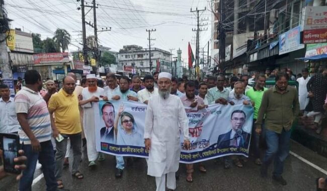 কর্মসূচিকে সফল করতে ভারিবৃষ্টি উপেক্ষা করে হাজারো নেতাকর্মী নিয়ে মিছিল সহকারে ঐতিহাসিক আলিয়া মাদ্রাসা মাঠে উপস্থিত হয়েছেন গোয়াইনঘাট উপজেলা পরিষদের সাবেক একাধিকবারের নির্বাচিত চেয়ারম্যান ও সিলেট জেলা বিএনপির সাবেক সহসভাপতি আব্দুল হাকিম চৌধুরী।