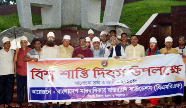 তিনি (২১ সেপ্টেম্বর) বিকালে সিলেট কেন্দ্রীয় শহীদ মিনার প্রাঙ্গণে বাংলাদেশ মানবাধিকার বাস্তবায়ন ফাউন্ডেশন (বিএমবিএফ) সিলেট বিভাগ, জেলা ও মহানগরের উদ্যোগে বিশ্ব শান্তি দিবস উপলক্ষে র্যালী শেষে আয়োজিত আলোচনা সভা ও প্রধান অতিথির বক্তব্যে উপরোক্ত কথাগুলো বলেন।