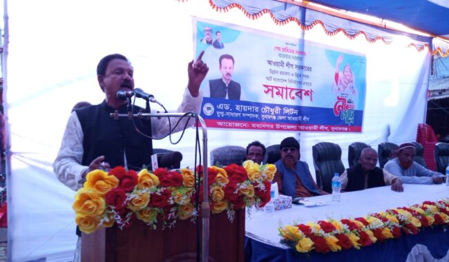 সুনামগঞ্জের মধ্যনগর উপজেলা সদরে বাংলাদেশ আওয়ামী লীগের উন্নয়ন প্রচারনায় জনসভা অনুষ্ঠিত হয়েছে।