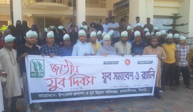 ওসমানীনগর (সিলেট) প্রতিনিধি: “স্মার্ট যুব, সমৃদ্ধ দেশ-বঙ্গবন্ধুর বাংলাদেশ” এ প্রতিপাদ্যকে সামনে রেখে সিলেটের ওসমানীনগরে যুব দিবস-২৩ পালিত হয়েছে।বুধবার (১লা নভেম্বর) এ উপলক্ষ্যে একটি র্যালী শহরের প্রধান প্রধান সড়ক প্রদক্ষিণ শেষে উপজেলা পরিষদ হলরুমে আলোচনা সভা অনুষ্ঠিত হয়।