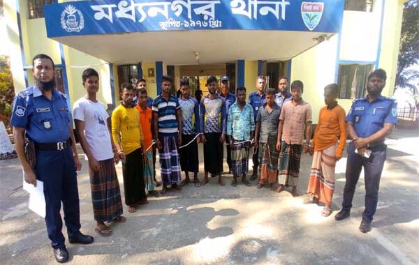আটককৃতরা হলেন- আনোয়ারপুর গ্রামের মোঃআসাদ মিয়া(৩০), মোঃ উজ্জল মিয়া (৪০), মোঃ সুহেল মিয়া (২০), শাহিন আলম (২৫), মোঃ হানিফ (৩০), খোকন মিয়া (২৬)মোঃ মোজাম্মেল হোসেন (২৫)। বনগাও গ্রামের মোঃতানিম (১৯) নেত্রকোনার ঠাকুরাকোনা গ্রামের মোশারফ মিয়া (৩৫)চল্লিশা গ্রামের অলি মিয়া (৩০)।