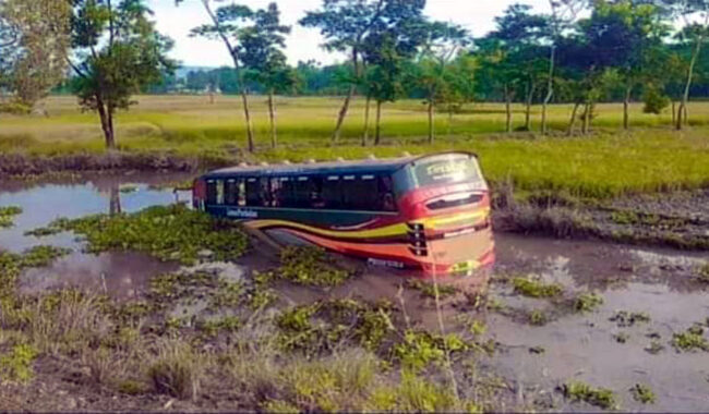 স্থানীয়রা জানান, লিমন পরিবহন নামের ঢাকার একটি বাস ভোর ৬টায় আলো-আঁধারের মধ্যে কোম্পানীগঞ্জ যাচ্ছিল।