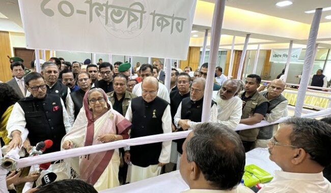 ডেস্ক রিপোর্ট: দ্বাদশ জাতীয় সংসদ নির্বাচনে আওয়ামী লীগের দলীয় মনোনয়ন ফরম বিক্রি ও জমা কার্যক্রমের উদ্বোধন করলেন দলের সভাপতি শেখ হাসিনা। শনিবার সকাল সাড়ে ১০টার দিকে এ কার্যক্রমের উদ্বোধন করেন তিনি। পরে বিভিন্ন বুথ ঘুরে দেখে নিজের জন্যও মনোনয়ন ফরম সংগ্রহ করেন।