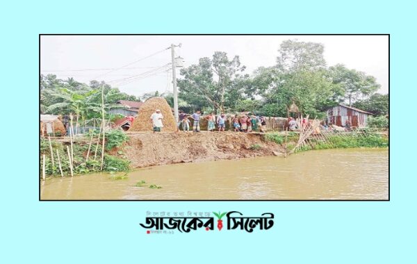 সুনামগঞ্জে সুরমা নদীর ভাঙনে ঘরবাড়ি, রাস্তাঘাটসহ বিভিন্ন স্থাপনা হুমিকতে পড়েছে। গত শুক্রবার জামালগঞ্জের গজারিয়ার একটি চিত্র। ছবি : সংগৃহীত