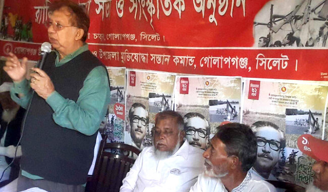 মঙ্গলবার গোলাপগঞ্জ মুক্ত দিবস উপলক্ষে আয়োজিত আলোচনা সভায় তিনি এ কথা বলেন। উপজেলা মুক্তিযোদ্ধা ও সন্তান কমান্ড এ সভার আয়োজন করে।