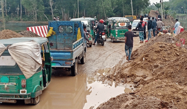 সরেজমিনে দেখা যায়, ভাঙ্গাচুরা সড়কের দু’পাশে মাটির স্তুপ ফেলে রাখায় বৃষ্টির কারণে আরও দুর্ভোগ সৃষ্টি হয়েছে। বৃষ্টিপাতের কারণে পিচঢালা উঠানো সড়কটি আরও দুর্বল হয়ে পড়ে। সড়কের শমশেরনগর বিমান বাহিনী ইউনিট সংলগ্ন রেলগেটের পূর্ব পাশে ঠিকাদারের গাফিলতির কারণে কয়লাবাহী ট্রাকগুলো দেবে যাওয়ার পর যানবাহন আটকা পড়ছে।
