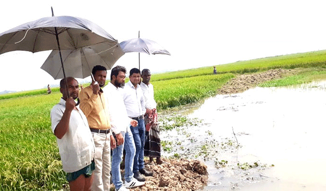লাখাই (হবিগঞ্জ) প্রতিনিধি : হবিগঞ্জের লাখাই উপজেলার হাওরে ঢুকতে শুরু করেছে মেঘনা নদীর পানি। এতে তিনটি হাওরের প্রায় ৫শ’ একর কাঁচা বোরো ধানের জমি তলিয়ে যাওয়ার শঙ্কা দেখা দিয়েছে। আর হাওর রক্ষার জন্য একটি বাঁধ মেরামতে ৪২ জন শ্রমিক দিনরাত কাজ করছেন।